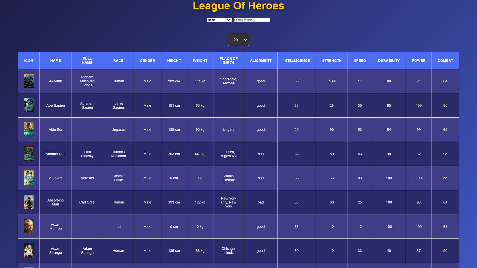 A Super Heroes DataBase sortable by any details using only JavaScript.